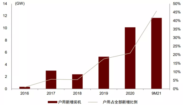 2021年1-9月我國戶用光伏新增裝機11.7GW,同比增添121.4%,在新增裝機中占比到達45.7%;1-6月占比則到達58.9%,超出集合式電站,戶用光伏需要拉動才能凸顯。為甚么要存眷戶用光伏?2021年戶用光伏對需要拉動才能凸顯。裝機空間廣漠或為1200GW-2200GW,以后屋頂滲入率低約為1.8%,今朝戶用光伏首要集合在山東、河北、河南三省,咱們以為跟著財產鏈價錢回歸公道,光伏組件價錢[領會概況]